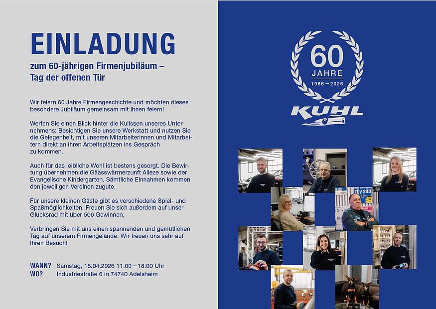 Erleben Sie einen unvergesslichen Tag bei der Firma Kuhl voller exklusiver Einblicke in unseren Arbeitsalltag!